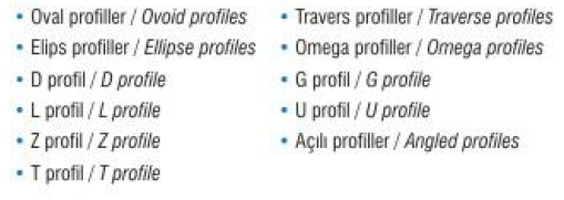 İstenildiği takdirde kaynaklı ve kaynaksız farklı şekillerde profillerin ar-ge departmanımızda dizaynı. Cnc tezgah ve ileri teknoloji ile donatılmış atölyemizde kalıplarının imalatı, hatlarımızda da üretimi yapılabilir.